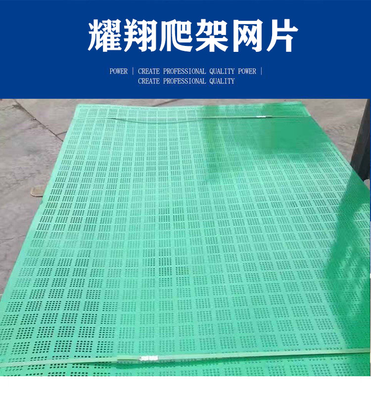 爬架網(wǎng)片重量輕,方便安裝。顏色多種,常用顏色有藍(lán)色,……