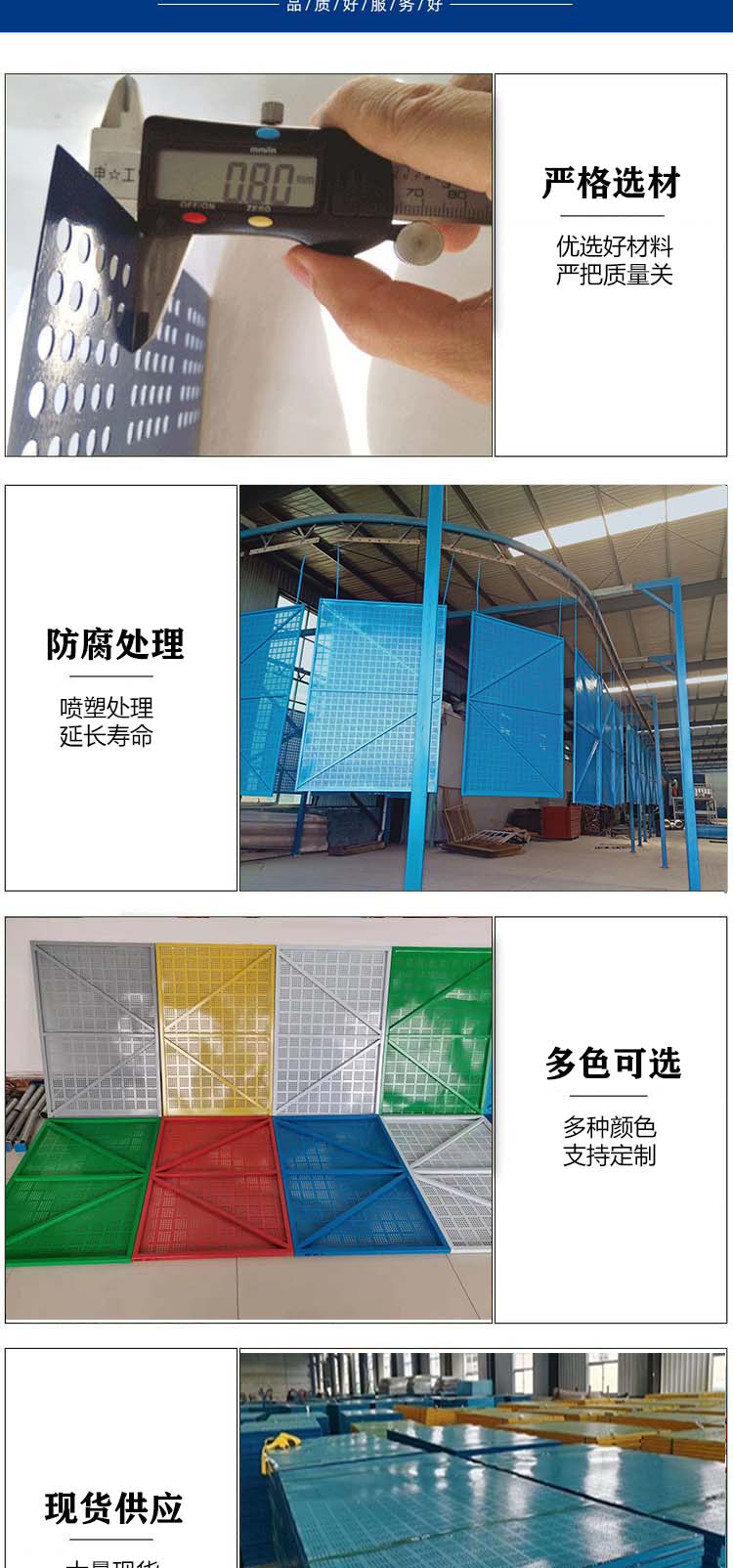 米字型爬架網(wǎng)是鍍鋅爬架網(wǎng)片和鍍鋅方管組裝成的*防護網(wǎng),重量輕,方便安裝。顏色多種,常用顏色有藍色,黃色、綠色等,也可根據(jù)客戶需求定制顏色;樣式一般分為半米字型爬架網(wǎng)、全米型爬架網(wǎng)、鍍鋅爬架網(wǎng)、圓孔爬架網(wǎng)、提升架防護網(wǎng)等,常規(guī)尺寸1.2mX1.8m、1.5mX1.8m、1mX2m等。爬架網(wǎng)為圓孔沖孔網(wǎng)設(shè)計,有效降低產(chǎn)品重量,提高采光效果,即*又不會在施工過程中感到壓抑,材質(zhì)為金屬板網(wǎng)也有效降低了火災發(fā)生的概率。