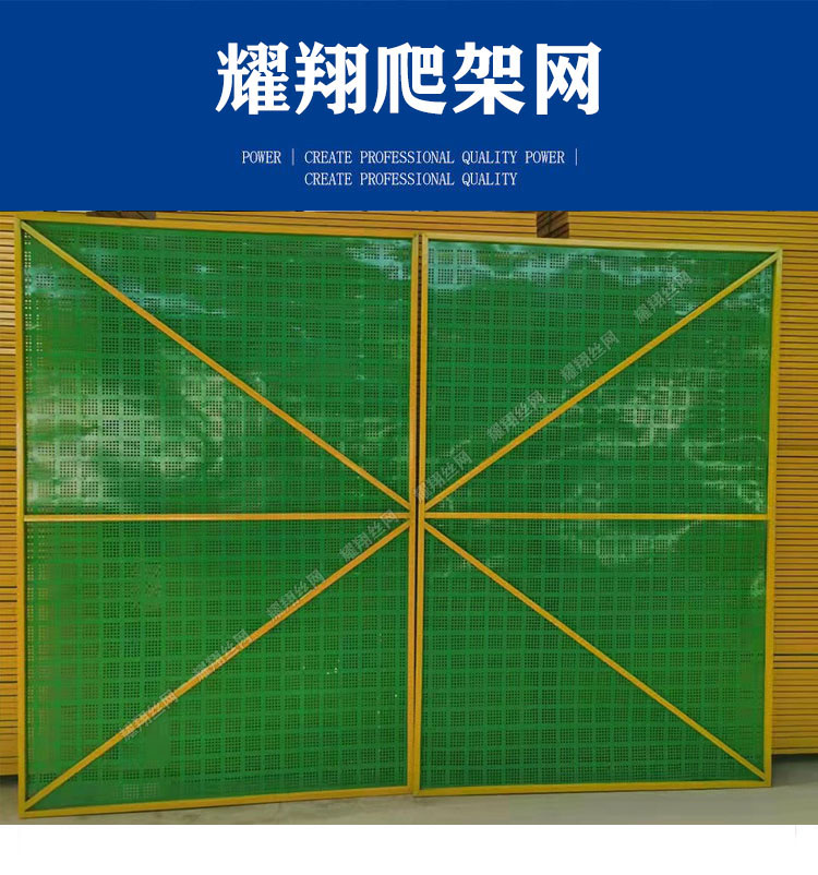 噴塑爬架網(wǎng)是鍍鋅爬架網(wǎng)片和鍍鋅方管組裝成的建筑防護(hù)網(wǎng),重量輕,方便安裝。顏色多種,常用顏色有藍(lán)色,黃色、綠色等,也可根據(jù)客戶需求定制顏色;樣式一般分為半米字型爬架網(wǎng)、全米型爬架網(wǎng)、鍍鋅爬架網(wǎng)、圓孔爬架網(wǎng)、提升架防護(hù)網(wǎng)等,常規(guī)尺寸1.2mX1.8m、1.5mX1.8m、1mX2m等。爬架網(wǎng)為圓孔沖孔網(wǎng)設(shè)計(jì),有效降低產(chǎn)品重量,提高采光效果,即*又不會(huì)在施工過程中感到壓抑,材質(zhì)為金屬板網(wǎng)也有效降低了火災(zāi)發(fā)生的概率。