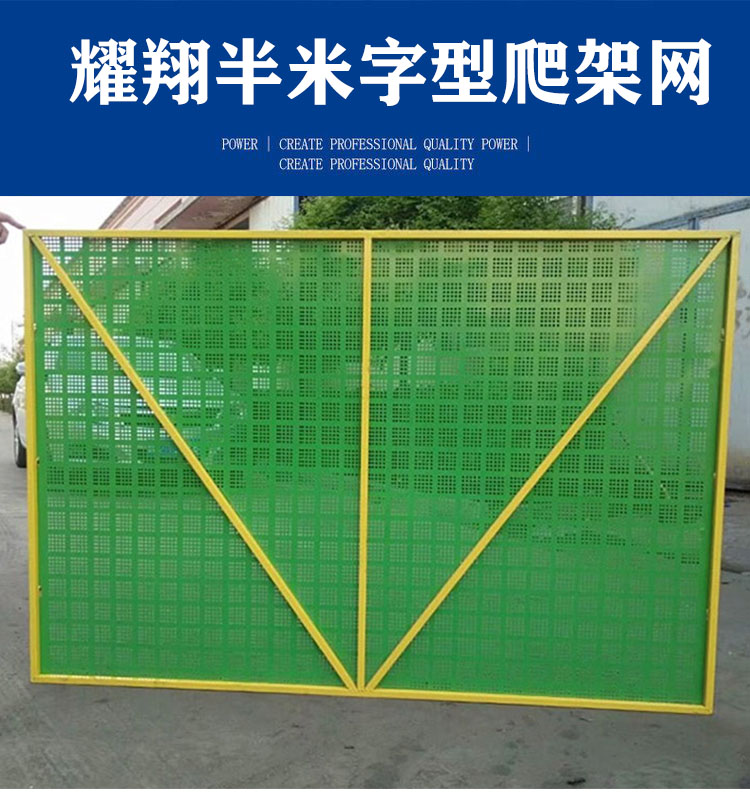 半米字型爬架網是鍍鋅爬架網片和鍍鋅方管組裝成的*防護網,重量輕,方便安裝。顏色多種,常用顏色有藍色,黃色、綠色等,也可根據客戶需求定制顏色;樣式一般分為半米字型爬架網、全米型爬架網、鍍鋅爬架網、圓孔爬架網、提升架防護網等,常規(guī)尺寸1.2mX1.8m、1.5mX1.8m、1mX2m等。爬架網為圓孔沖孔網設計,有效降低產品重量,提高采光效果,即*又不會在施工過程中感到壓抑,材質為金屬板網也有效降低了火災發(fā)生的概率。