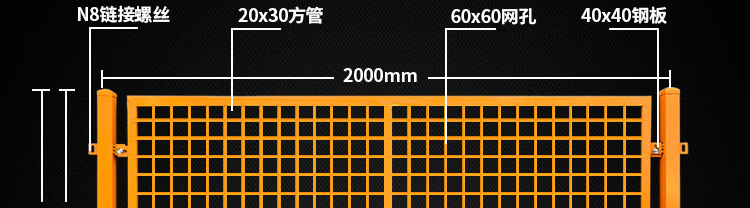 建筑基坑護(hù)欄是使用網(wǎng)片或豎管與邊框焊接而成,*常用的尺寸為1.2*2m,表面進(jìn)行噴塑或噴漆處理,顏色可選為紅白或黑黃相間的警示色,在基坑護(hù)欄的中部可焊接鐵皮噴涂“嚴(yán)禁拋物、禁止翻越”的警示標(biāo)語,下部可加設(shè)15-20cm的踢腳板,顏色可選擇黑紅或紅白相間的涂料。